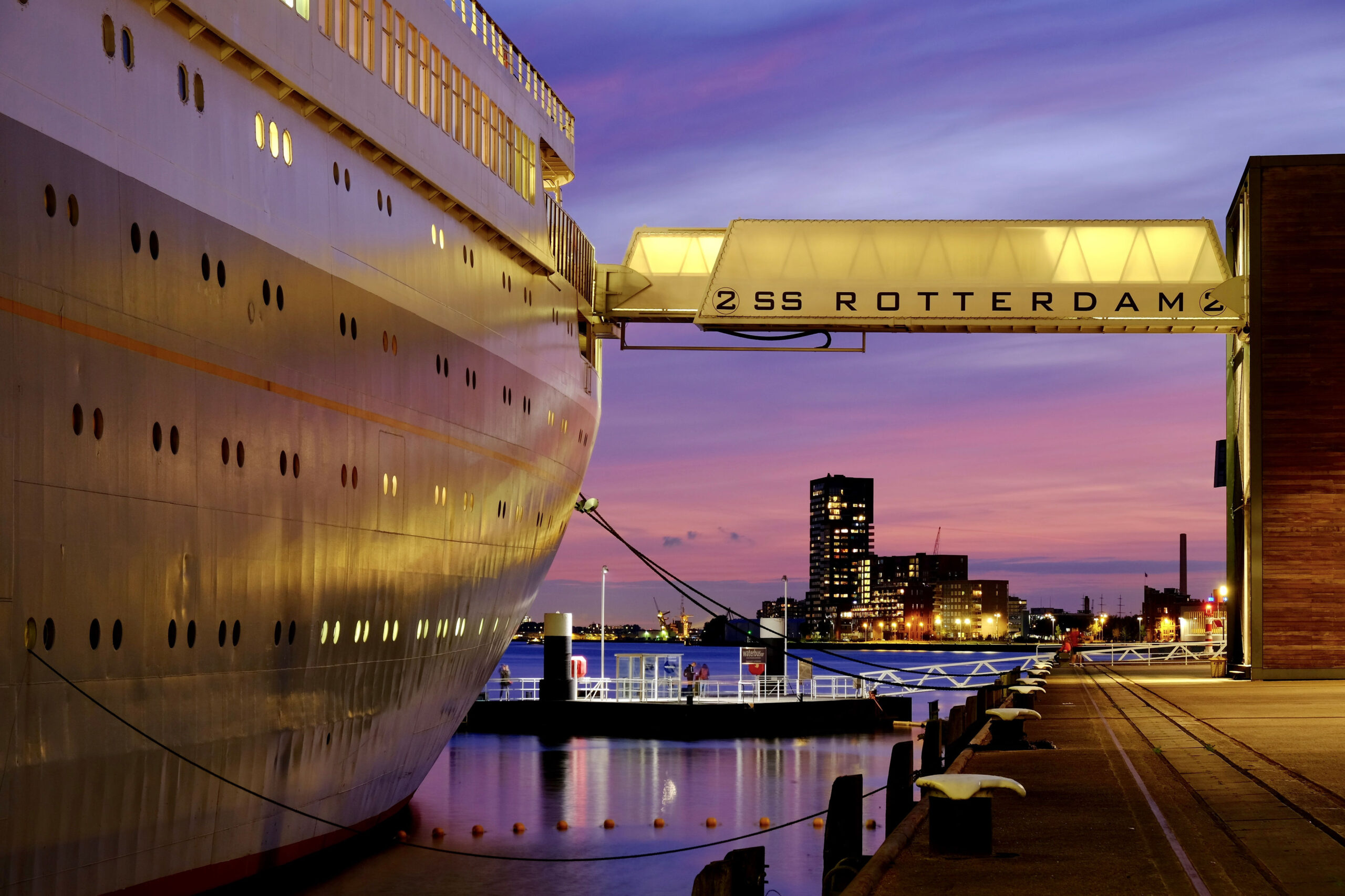 Step aboard the legendary SS Rotterdam, the former flagship of the Holland-America Line, and experience an unforgettable stay in maritime style. This floating four-star hotel blends historic charm with modern comfort. Sleep in beautifully restored 1950s-style cabins, savor fine dining at the elegant Club Room restaurant, or relax on the sunny Lido Deck with stunning views of the Maas River.